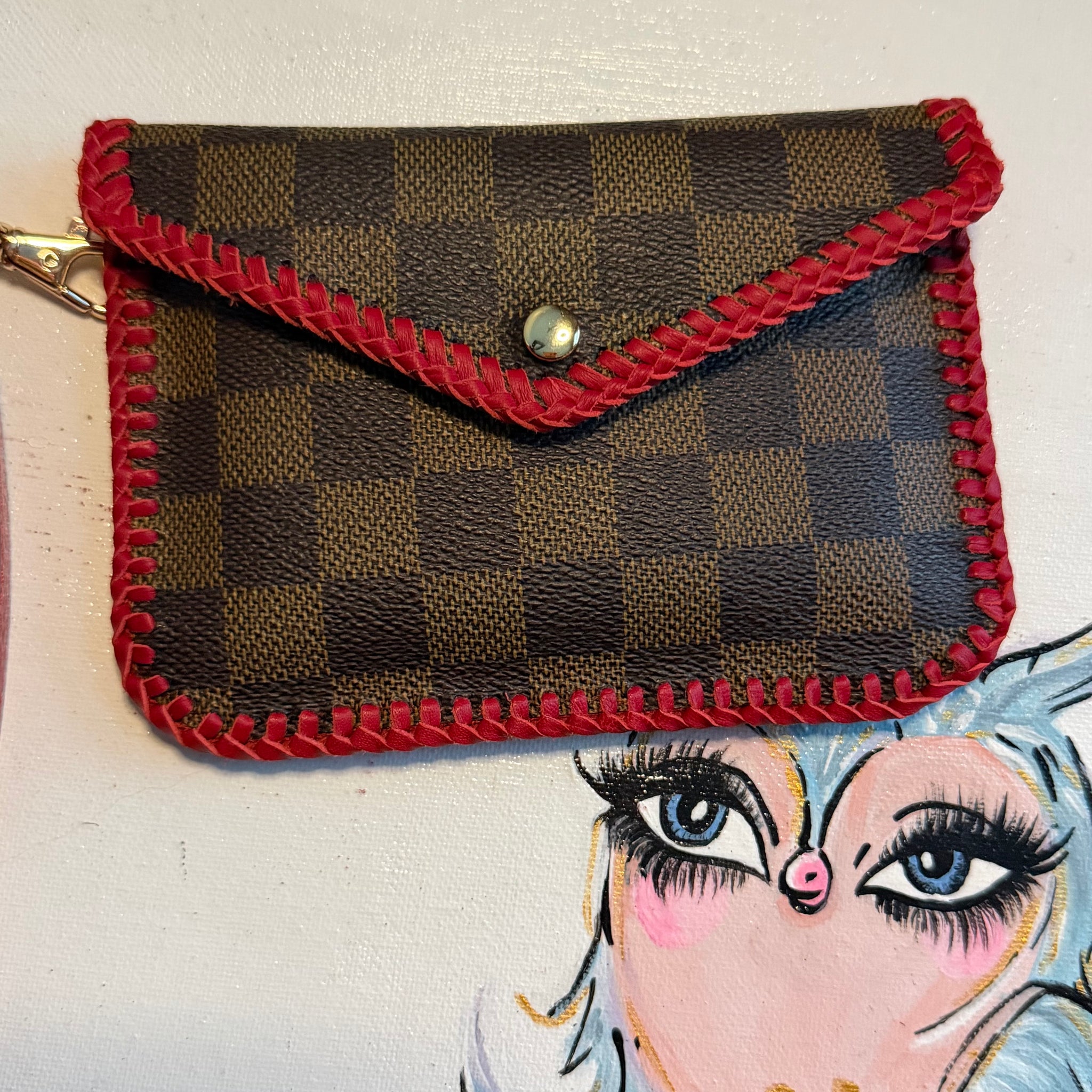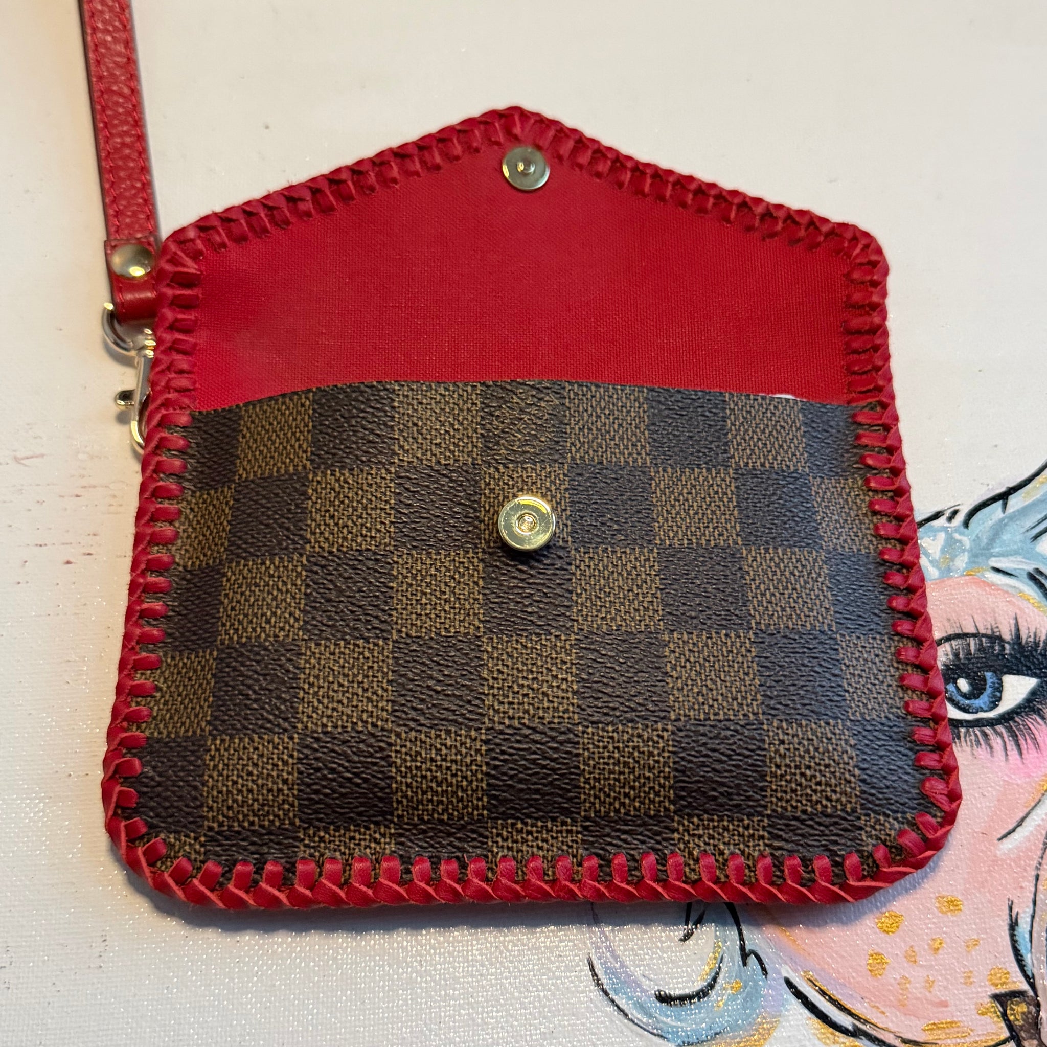 The Falcon Mini Shoulder Bag/Wristlet - Vintage LV Damier in Red