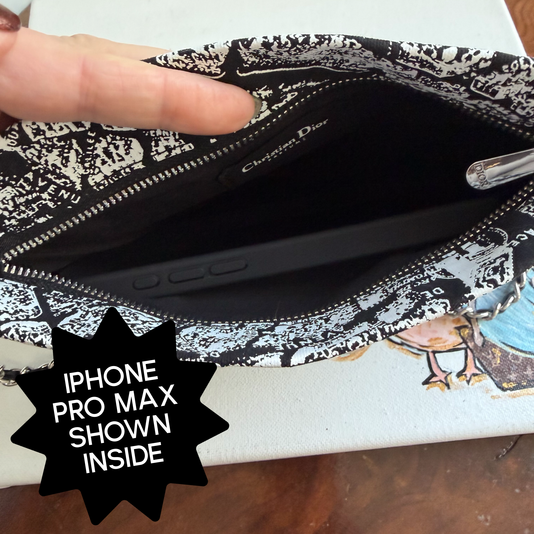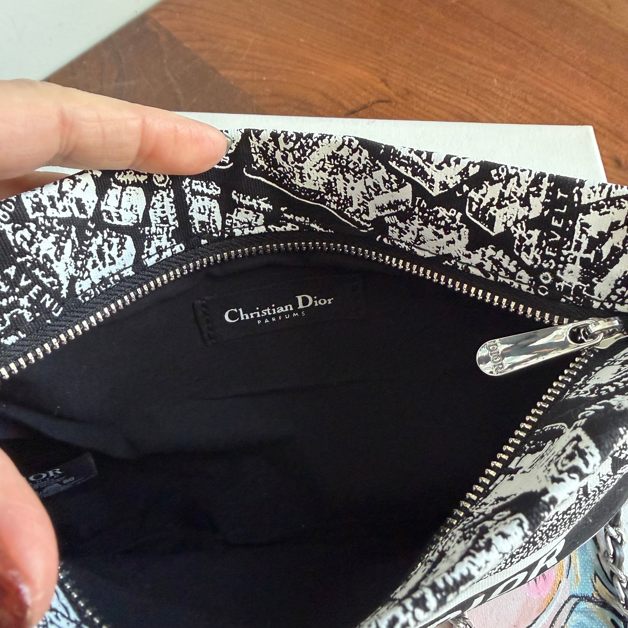 Please note: The bag will come in the box shown in the pictures. This is a beauty bag that was created by the parent company and given to customers as a thank you. It was not for sale. I have converted this item into a crossbody bag. This is not intended to be seen as "authentic" Dior.