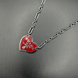 Prada Heart Bag Tag Necklace - Red/Silver on White-Gold-Filled Paperclip Chain