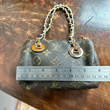 The original LV tabs were missing from the ends, and I did dye the vachetta trim around the ends black. The vachetta has been conditioned, but there are cracks in it (see pics!). The zipper pull was missing, so I've added an authentic LV Padlock key to use as a pull, it's so cute!!! This bag measures ~L5.5 x H3.5 x 2.5".