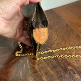 This bag’s canvas is in great shape. The inside has a different smooth material that is not sticky. It does have a few stains inside (see pics). I've recoated the edges so that it looks like new. The zipper is the older style but still works great. I've attached a fun wristlet chain with charms for easy carrying. The chain can come off. If you don't like the charms, or you’d prefer a longer chain to use this as a shoulder or crossbody bag, please let me know and I can swap it out.