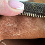 It has a large front pocket that is 7.5" deep and is perfect for carrying a phone.  The interior is very roomy, and there's also a pocket on the inside.  This is an older bag, with a date code of 881 SL, which indicated it was produced in France in January 1988!  She still has life left!!!