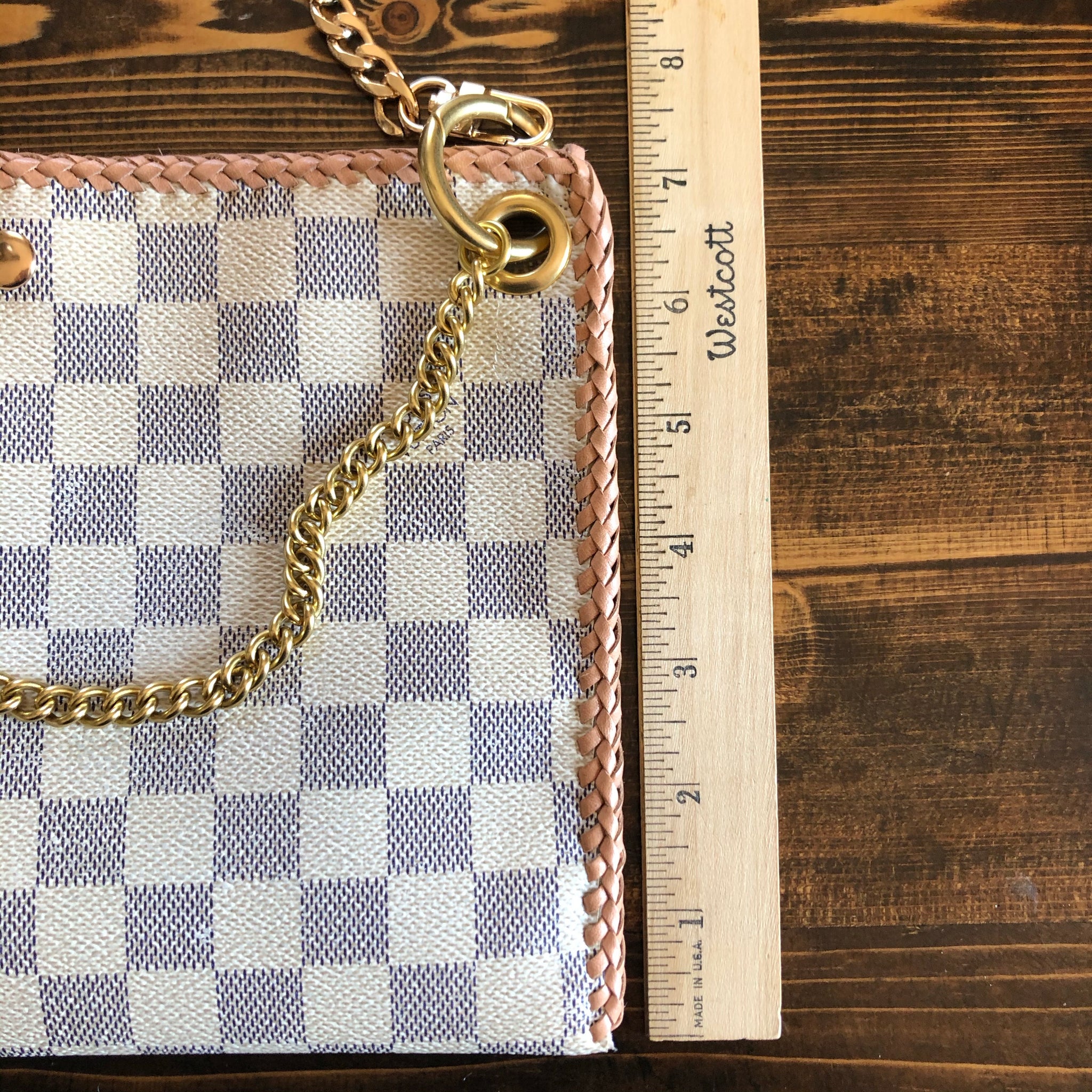The Nuthatch - Vintage Damier Azur Shoulder Bag with Gold Crossbody Chain