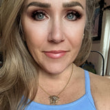 I've hung the pendant from a 17" gold-filled rope chain. the pendant itself is about an inch across.