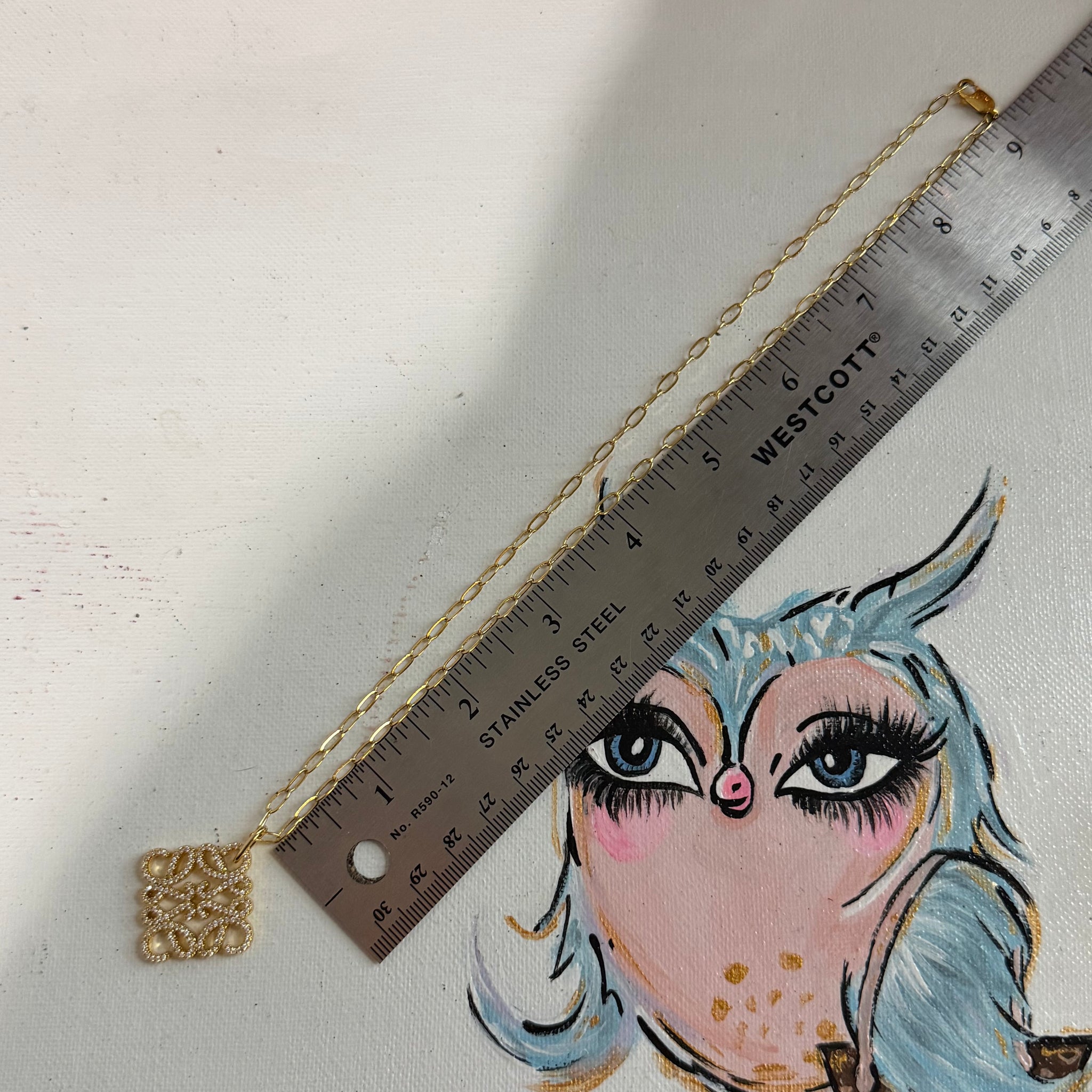 I love that this one can be worn two different ways!  Blingy on one side and understated on the other! The understated side is stamped. I've hung the charm from a gold filled paperclip chain that is 18" long. Either side of this necklace will look so cute layered with your other necklaces!!