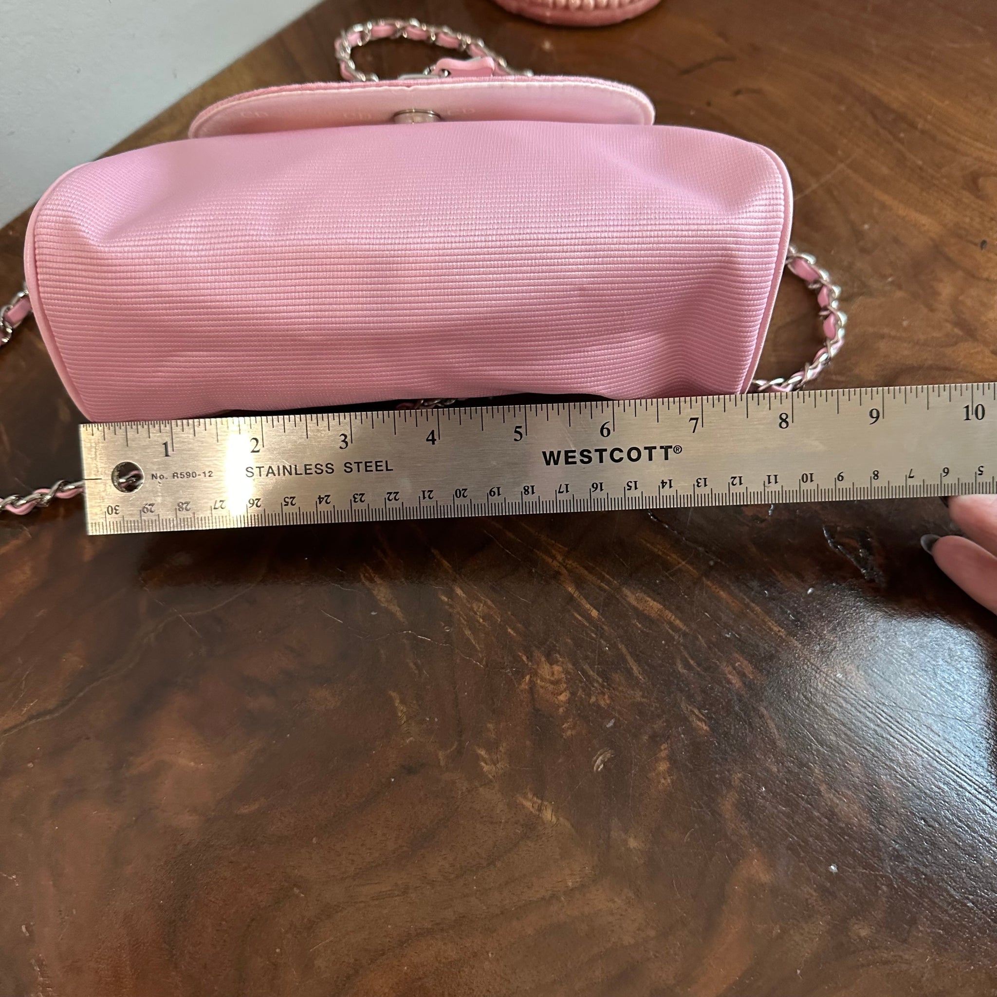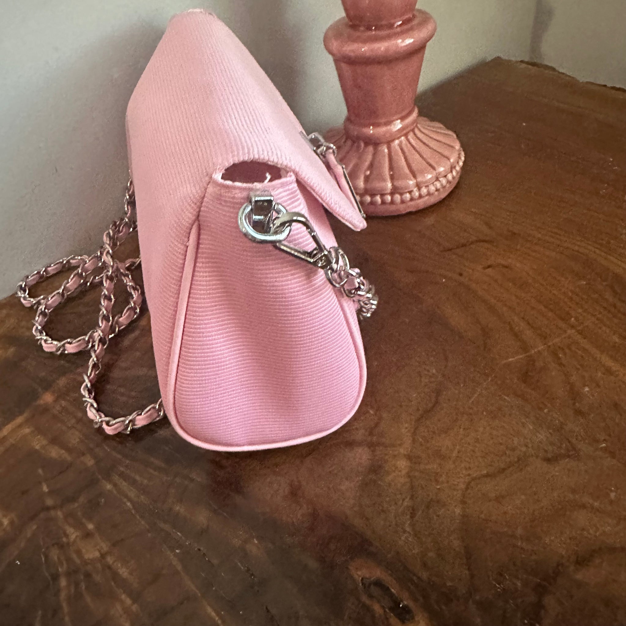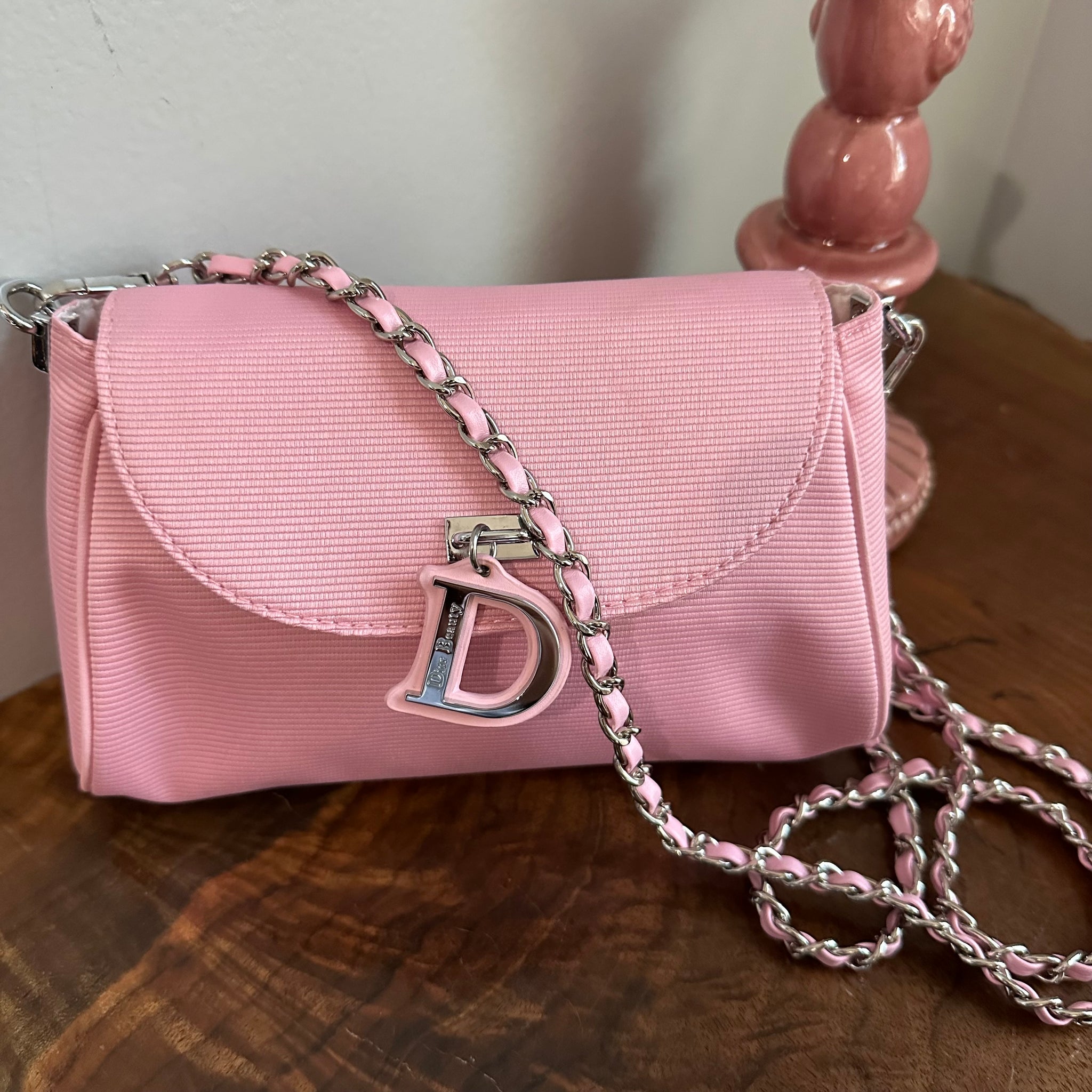 This authentic Dior Beauty bag is brand new and is an affordable solution to having your own DIOR!!! This bag is a pale pink and has a fun silver "D" on the front with Christian Dior engraved into it. The flap has a secure magnetic snap.