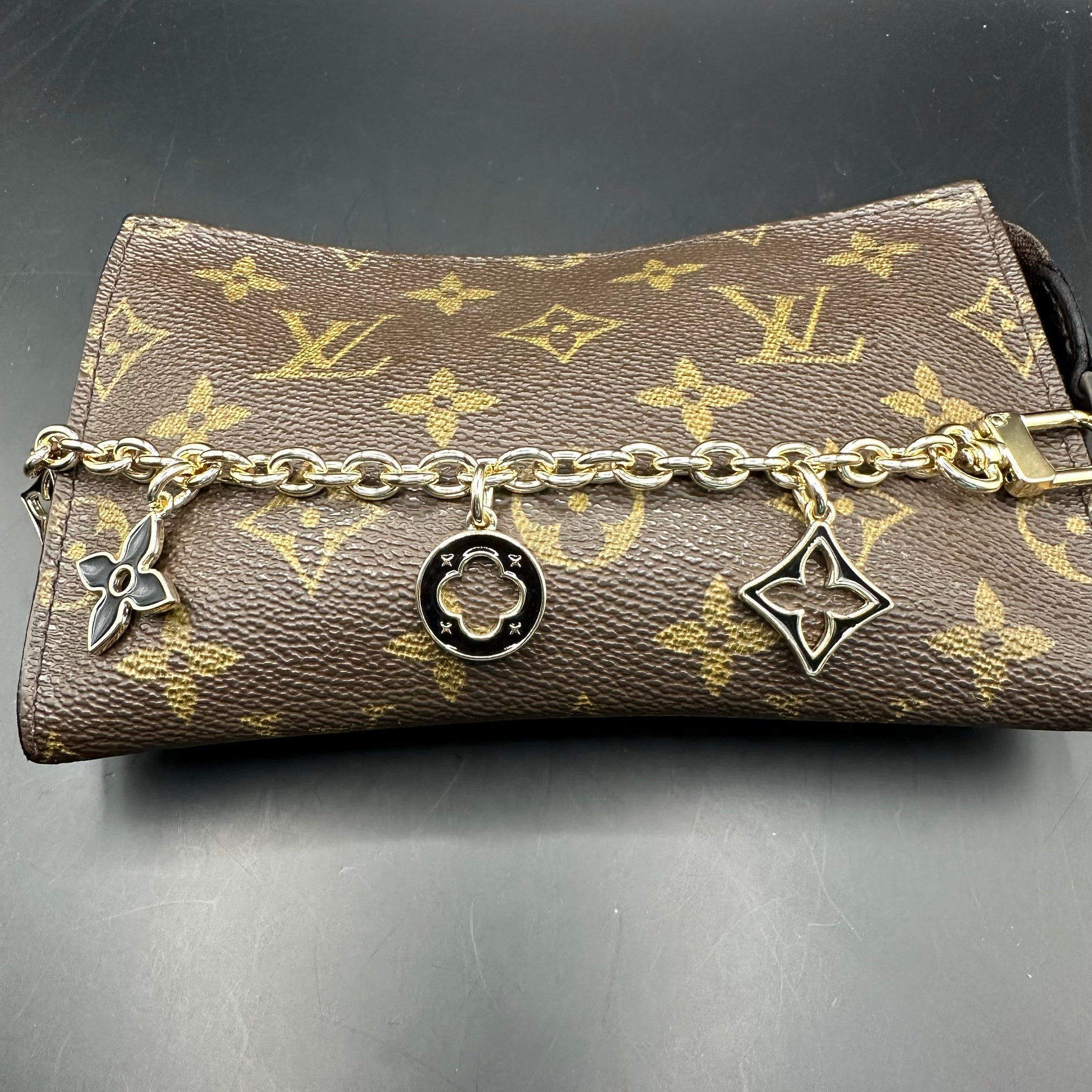The Junco Wristlet - Vintage Monogram in Black