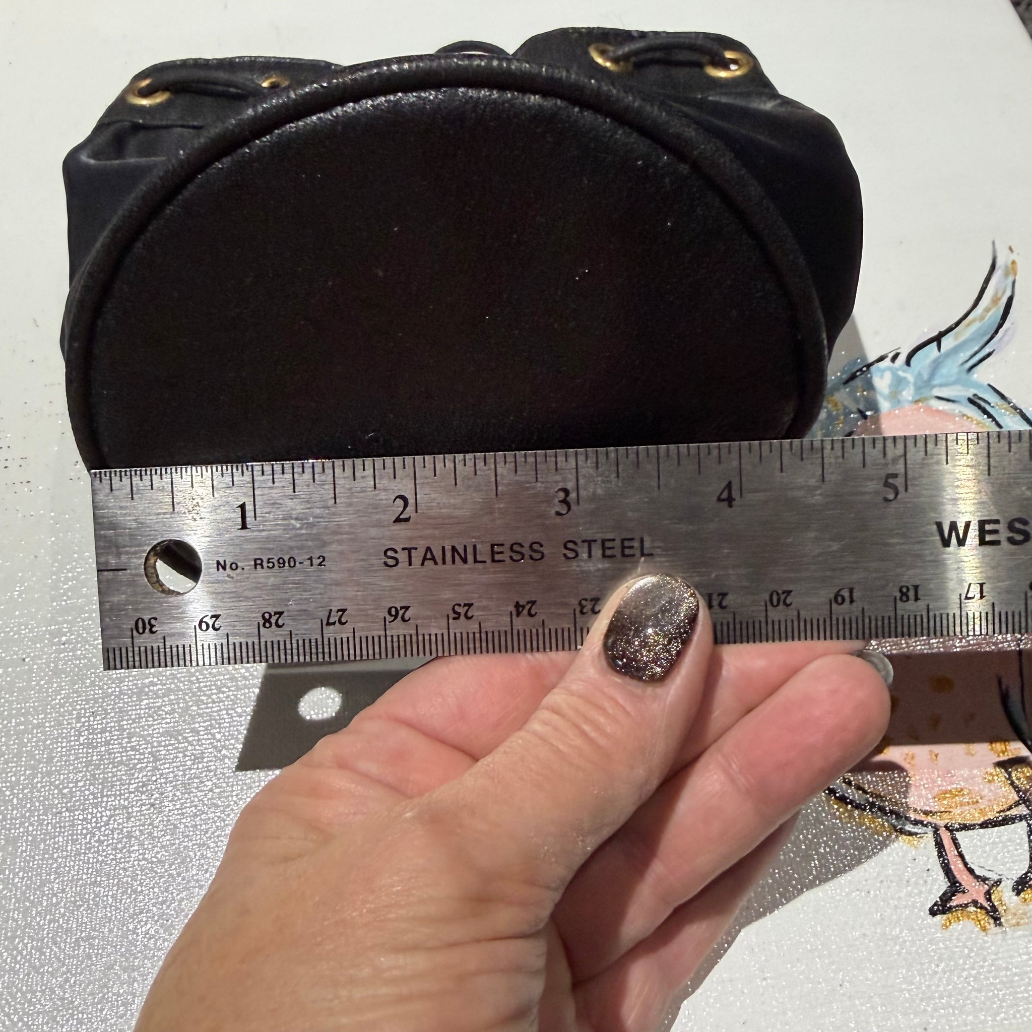 This authentic Celine bag is so dang cute. I gave her a good cleaning inside and out. The outside material is a thicker satin-y feel, while the top and bottom looks like a weathered leather (almost like suede). She's pretty small, only measuring 4.5 inches round and 6 inches tall.
