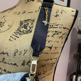 This bag comes with TWO straps!!! The adorable chunky grey plastic strap works great as a shoulder strap (drop is 12" but this can be shortened by removing links super easily). I've also included a black canvas crossbody strap that is adjustable from 30-52". This strap allows you to carry this bag across your chest, or even wear it as a belt bag.