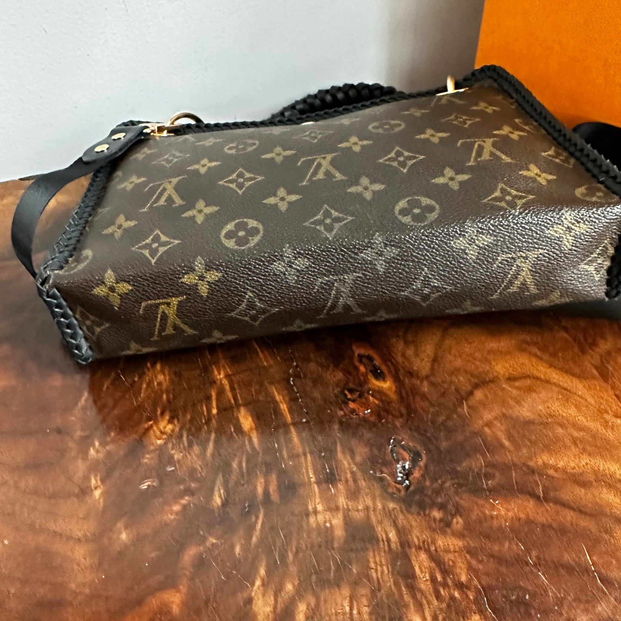 This Swan started out as an authentic Louis Vuitton Poche Toilette 26. This is one of my FAVES!!! This one is the perfect crossbody, holding LOTS of things, and comes in at about 9.8" wide by 7.5" tall and 2" deep.